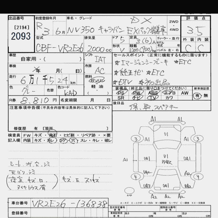NISSAN NV350 CARAVAN DX EX PACK SOU TEA K CAR 1.2 TON 6 PERSON - лот 2093