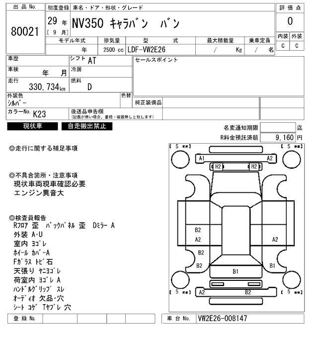 NISSAN NV350 CARAVAN VAN - лот 80021
