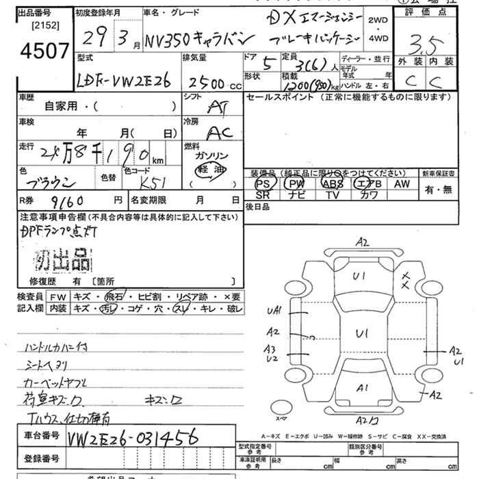 NISSAN NV350 CARAVAN DXEMA-JENSI- BRAKE PACKAGE - лот 4507