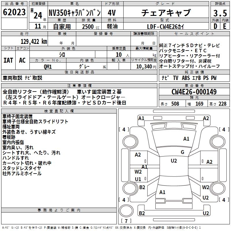 NISSAN NV350 CARAVAN CHAIR CAB - лот 62023