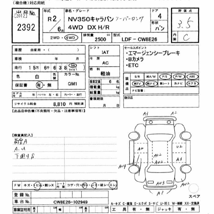 NISSAN NV350 CARAVAN 4WD SUPER LONG DX H/R - лот 2392