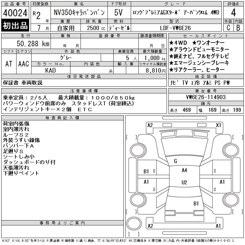 NISSAN NV350 CARAVAN LONG PRE GX TURBO ABA4WD - лот 40024