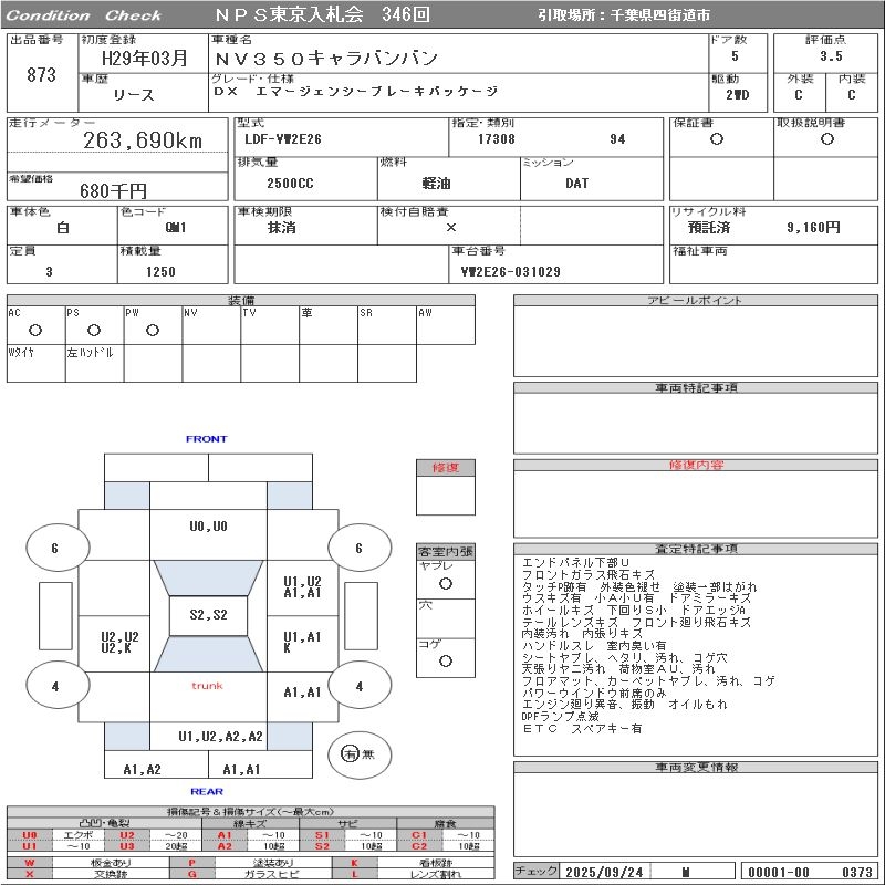 NISSAN NV350 CARAVAN DX/EMA-JENSI- BRAKE PACKAGE - лот 873