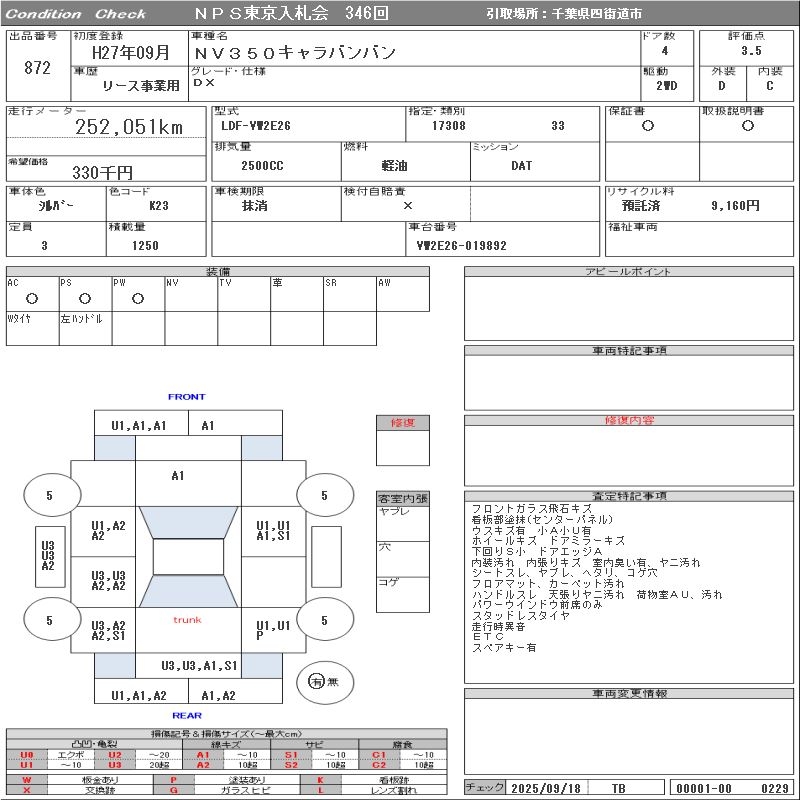 NISSAN NV350 CARAVAN DX - лот 872