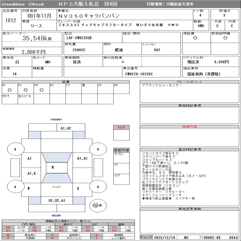NISSAN NV350 CARAVAN - лот 1012
