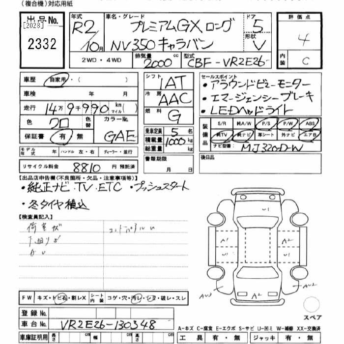 NISSAN NV350 CARAVAN - лот 2332