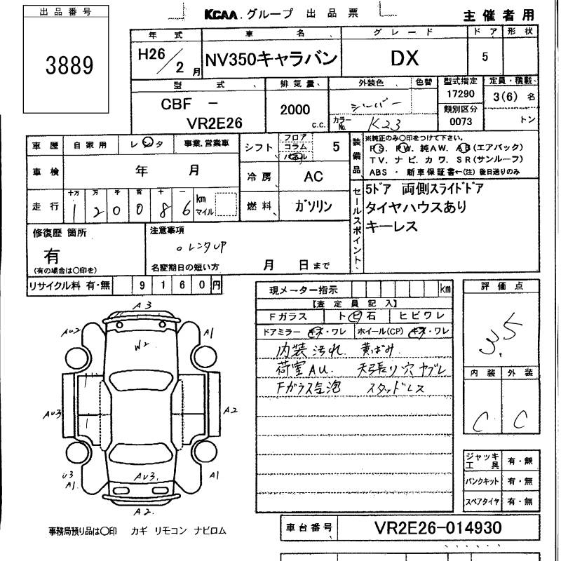 NISSAN NV350 CARAVAN - лот 3889
