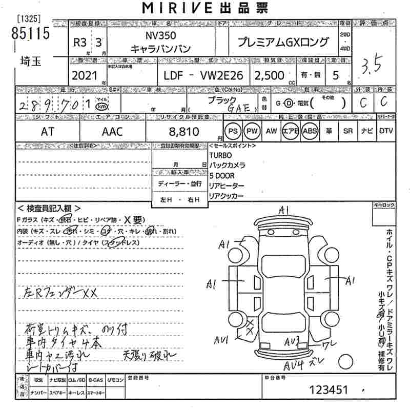 NISSAN NV350 CARAVAN - лот 85115