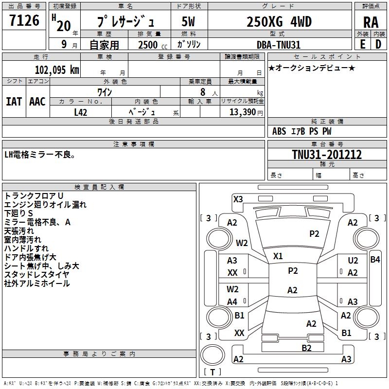 NISSAN PRESAGE 250XG 4WD - лот 7126