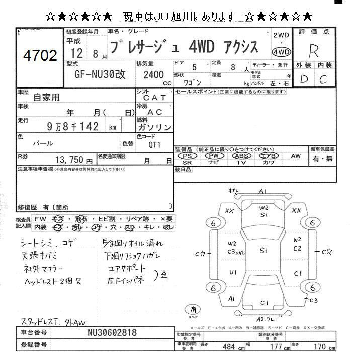 NISSAN PRESAGE 4WD AXIS - лот 4702