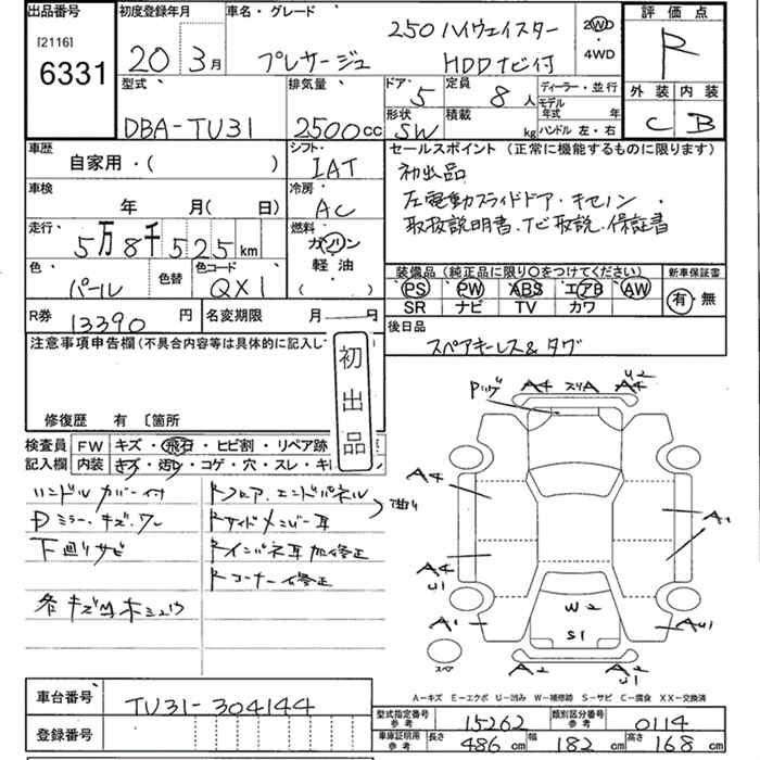 NISSAN PRESAGE 250 HIGHWAY STAR HDD NAVI EXIST - лот 6331