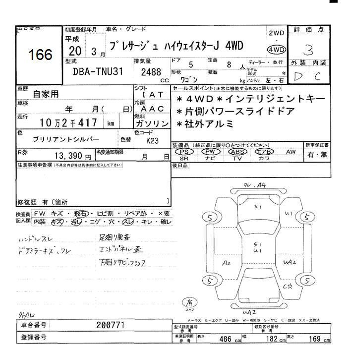 NISSAN PRESAGE 4WD 250 HIGHWAY STAR J - лот 166