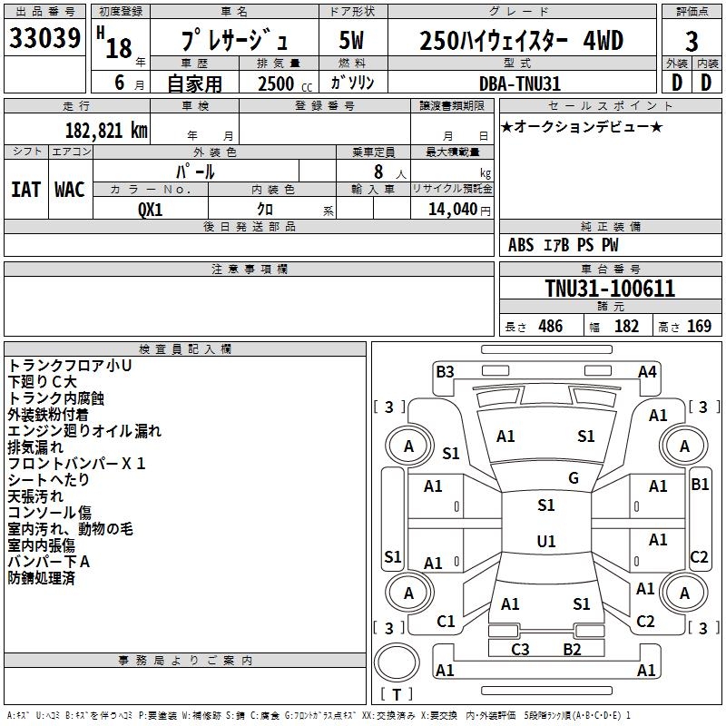 NISSAN PRESAGE 250 HIGHWAY STAR 4WD - лот 33039