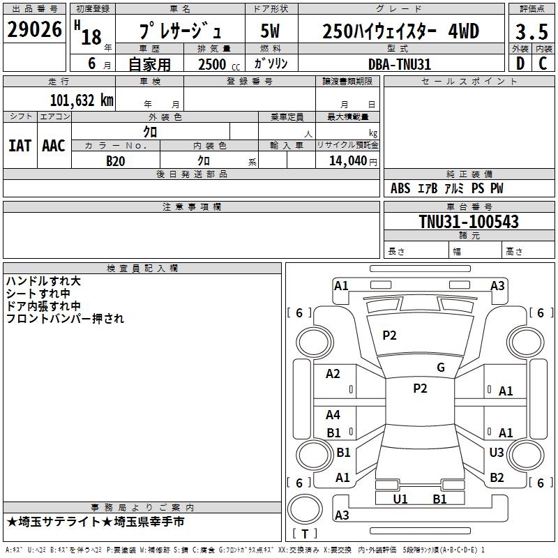 NISSAN PRESAGE 250 HIGHWAY STAR 4WD - лот 29026