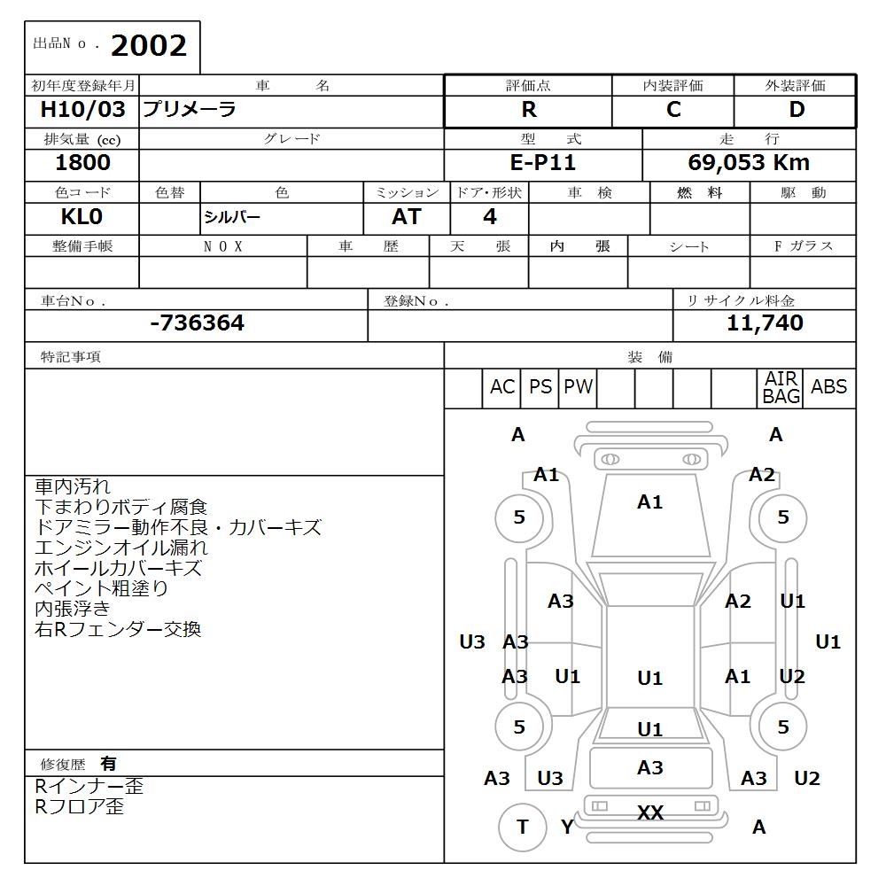 NISSAN PRIMERA - лот 2002
