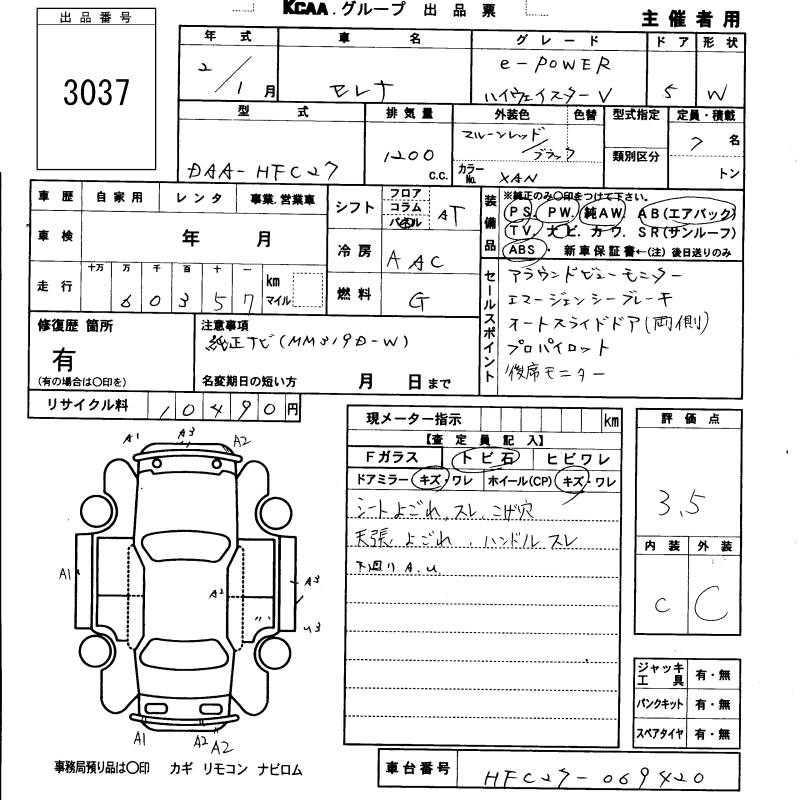 NISSAN SERENA E- POWER HIGHWAY STAR V - лот 3037