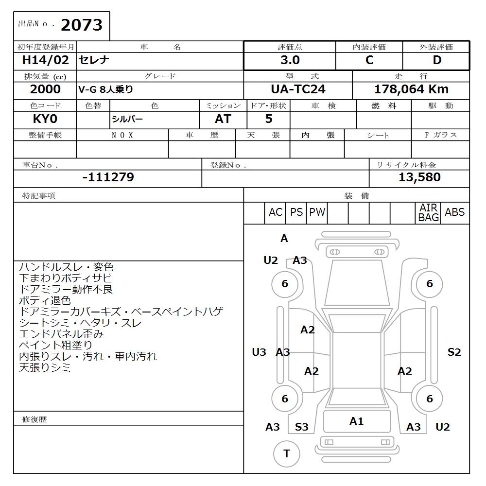 NISSAN SERENA V-G 8 NUMBER OF SEATS - лот 2073