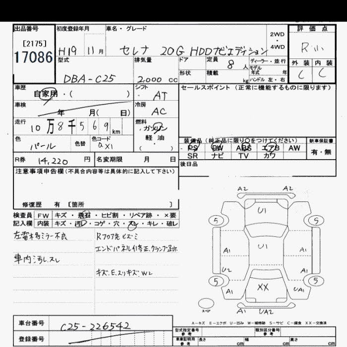 NISSAN SERENA 20G HDD NAVI EDITION - лот 17086