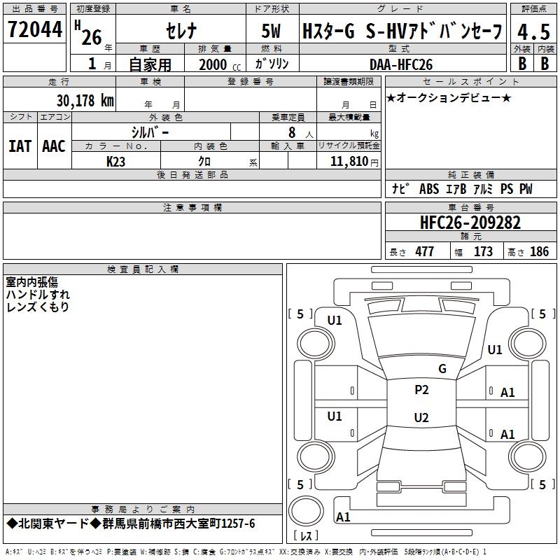 NISSAN SERENA H STAR G S-HV ADVAN SE-F - лот 72044