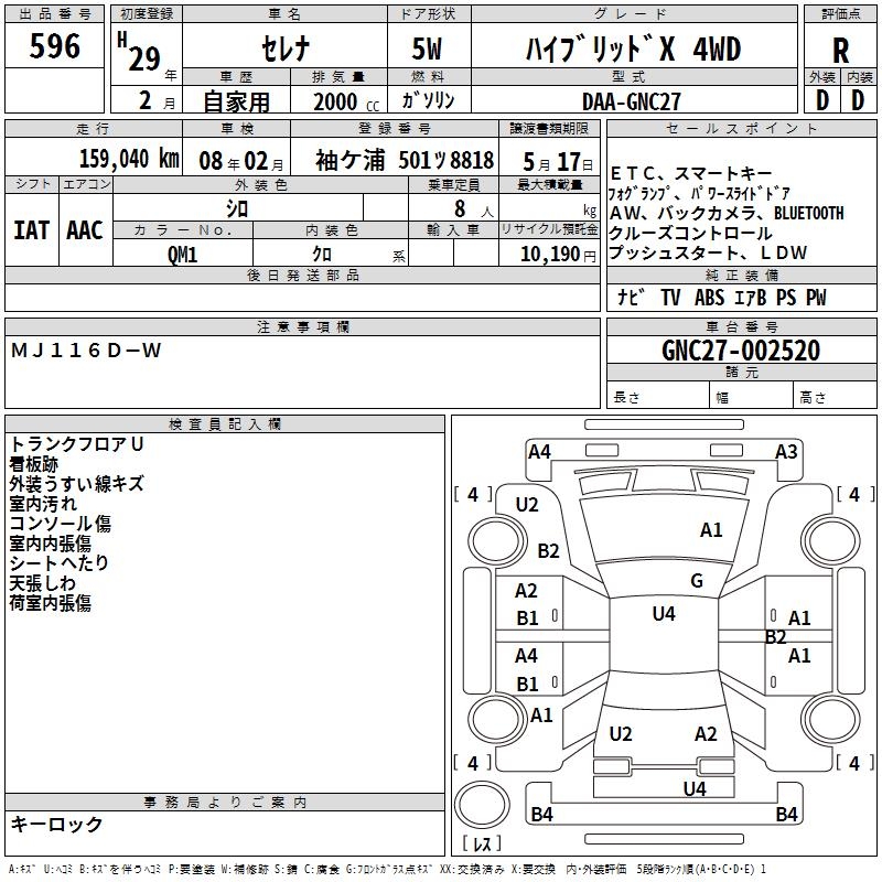 NISSAN SERENA HYBRID X 4WD - лот 596