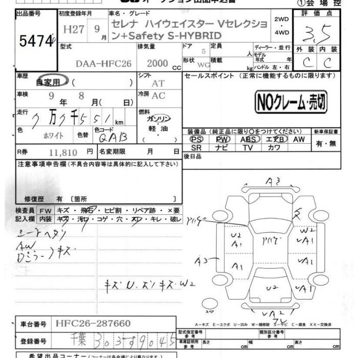 NISSAN SERENA HIGHWAY STAR V SELECTION + SAFETY S HYBRID - лот 5474