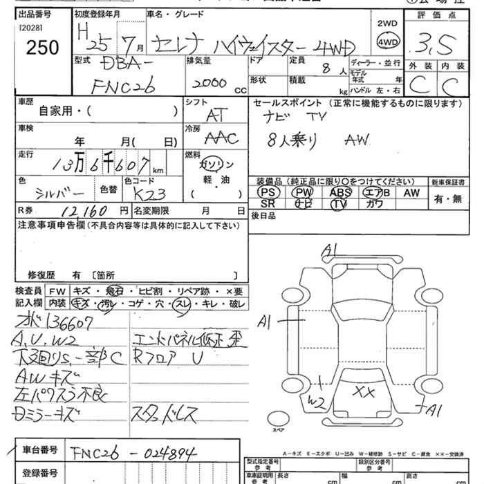 NISSAN SERENA 4WD HIGHWAY STAR - лот 250