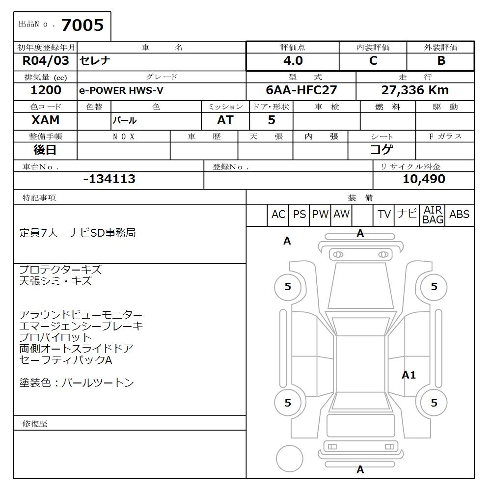 NISSAN SERENA e-POWER HWS-V - лот 7005