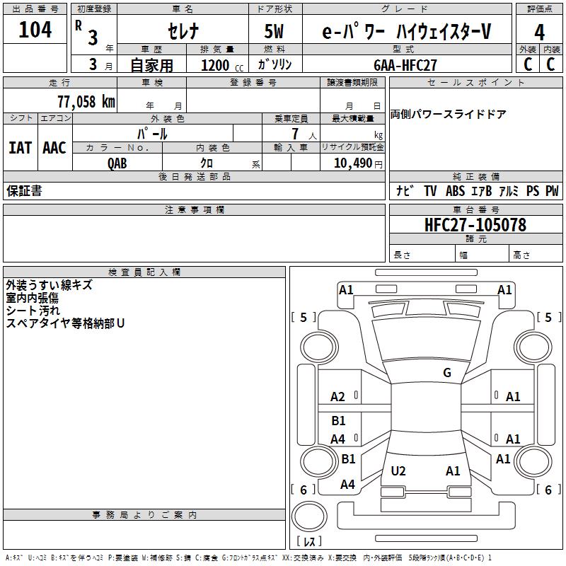 NISSAN SERENA E- POWER HIGHWAY STAR V - лот 104
