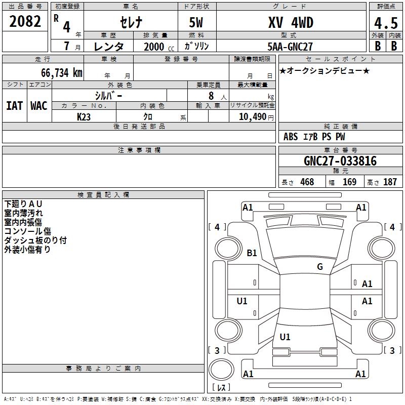 NISSAN SERENA XV 4WD - лот 2082