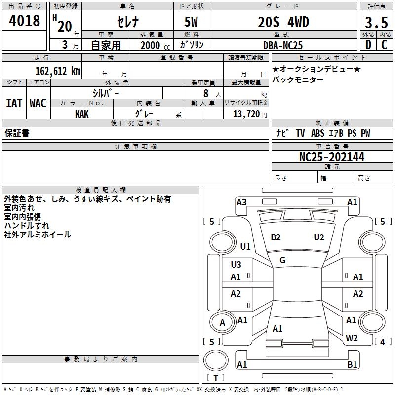 NISSAN SERENA 20S 4WD - лот 4018