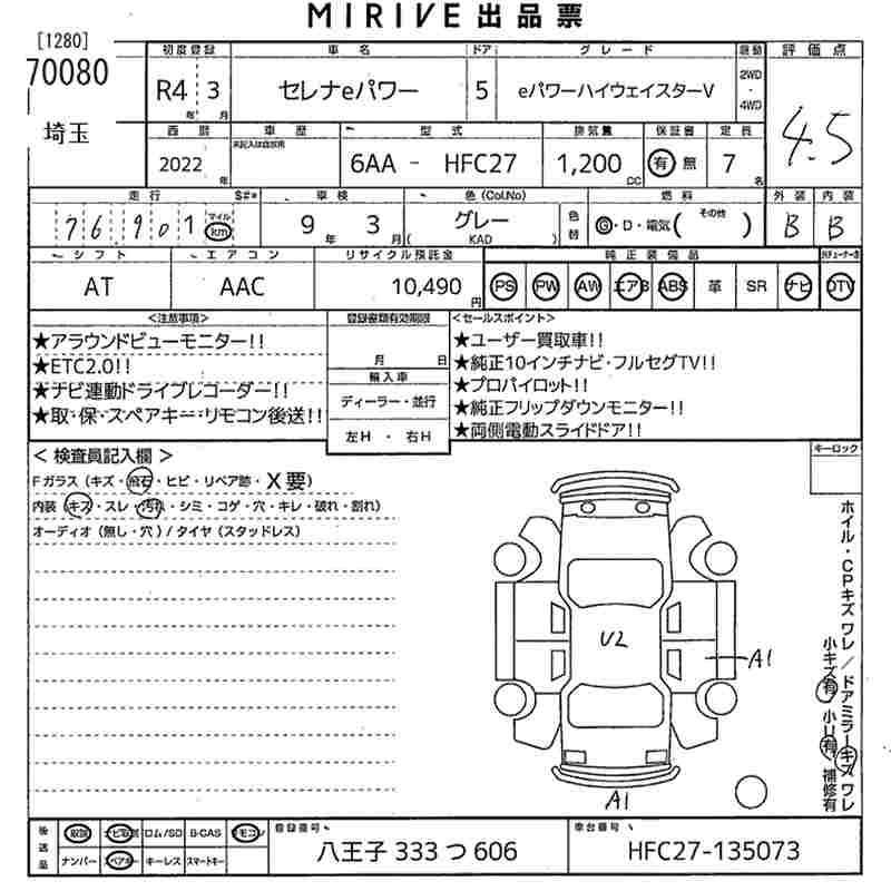 NISSAN SERENA E POWER HIGHWAY STAR V - лот 70080