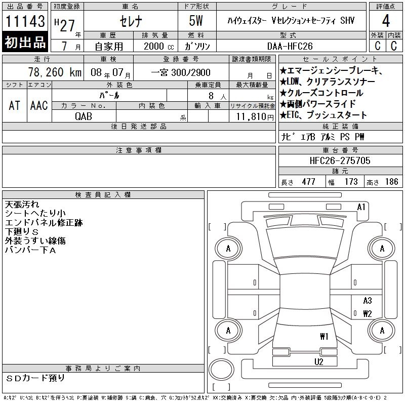 NISSAN SERENA H STAR V SELECTION +SEFTISHV - лот 11143