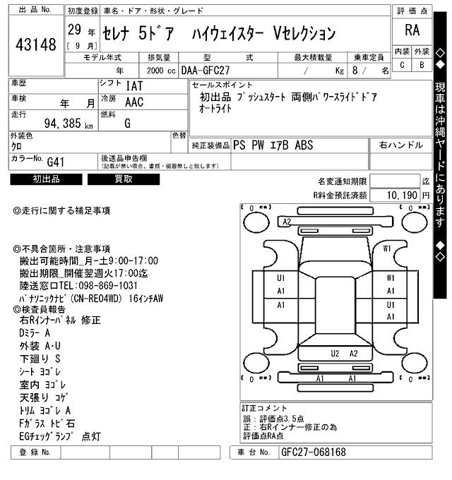 NISSAN SERENA HIGHWAY STAR V SELECTION - лот 43148