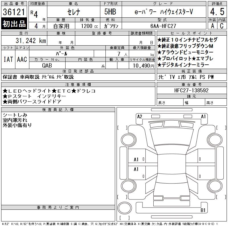NISSAN SERENA E- POWER HIGHWAY STAR V - лот 36121