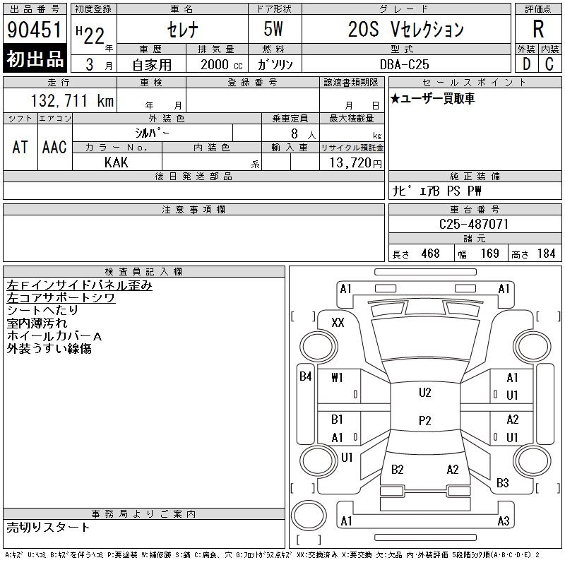 NISSAN SERENA 20S V SELECTION - лот 90451