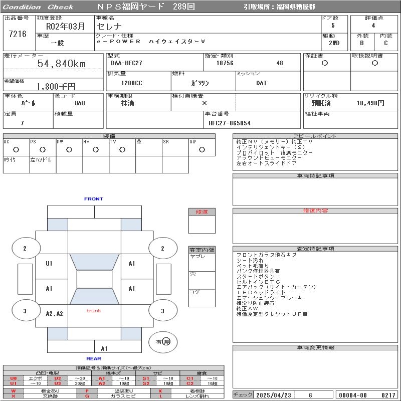 NISSAN SERENA E-POWER HIGHWAY STAR V - лот 7216