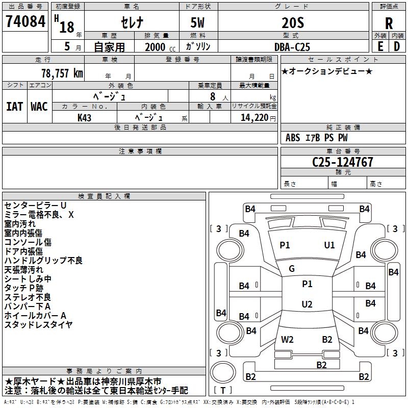 NISSAN SERENA 20S - лот 74084