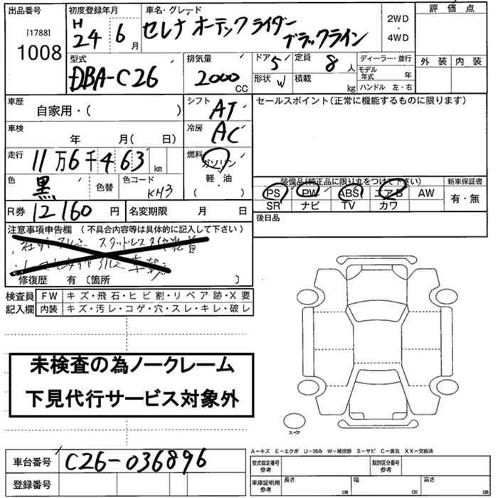 NISSAN SERENA RIDER BLACK LINE - лот 1008