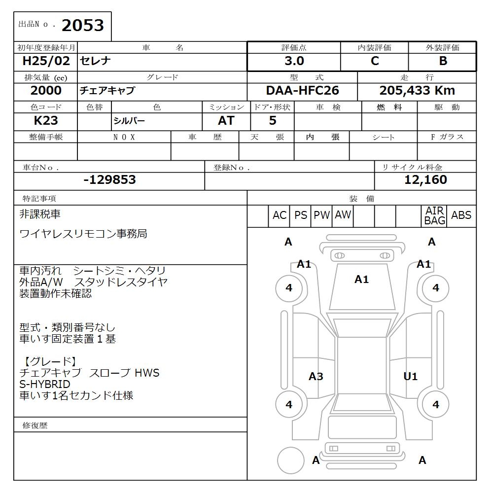 NISSAN SERENA CHAIR CAB - лот 2053