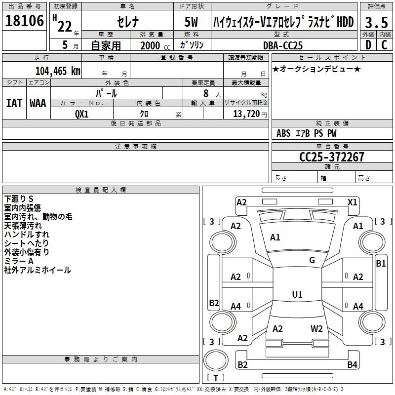 NISSAN SERENA HIGHWAY S V AERO SELECTION + NAVIGATION HDD - лот 18106