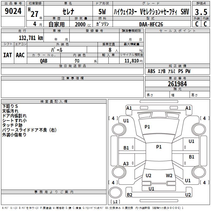 NISSAN SERENA H STAR V SELECTION +SEFTISHV - лот 9024