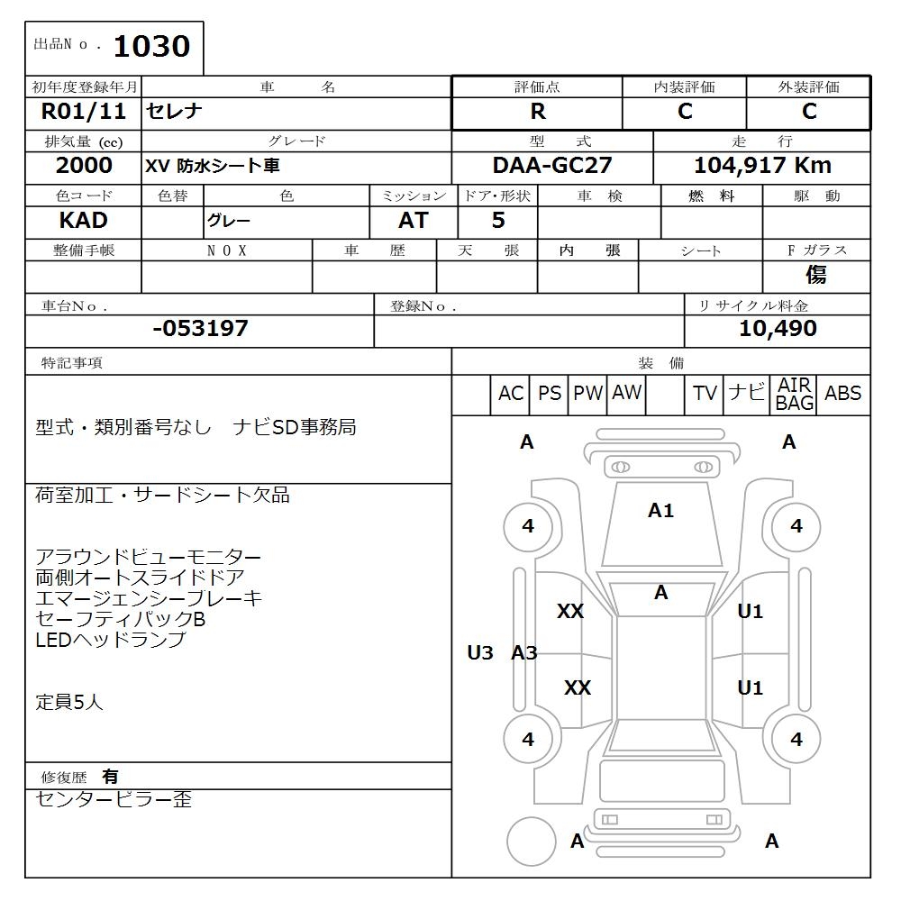 NISSAN SERENA XV WATERPROOF SEAT CAR - лот 1030