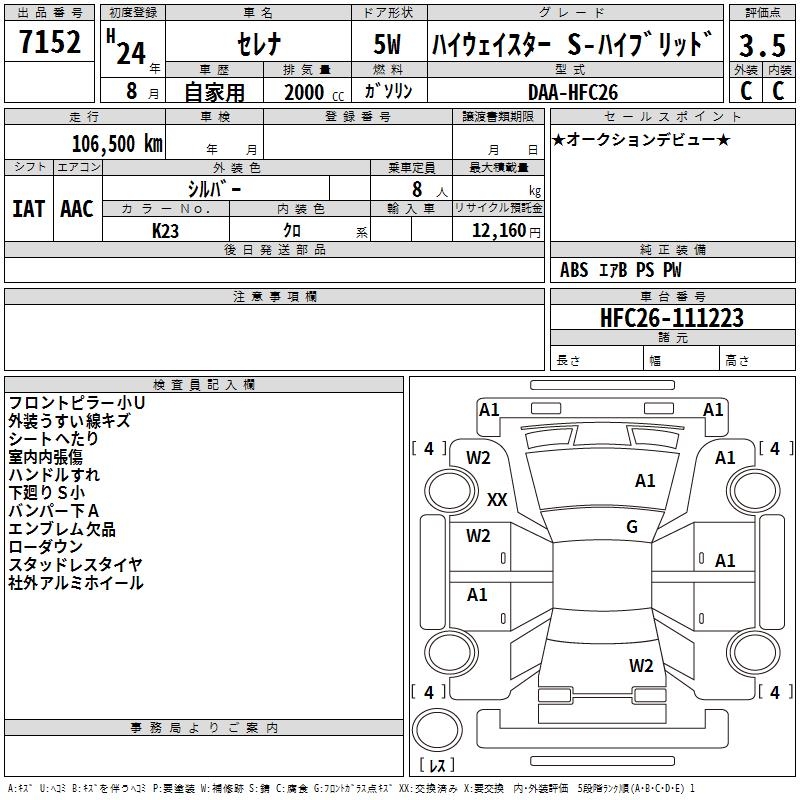 NISSAN SERENA HIGHWAY STAR S- HYBRID - лот 7152