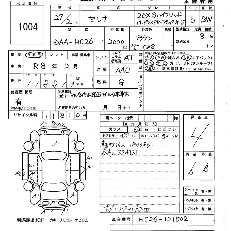 NISSAN SERENA 20X S- HYBRID ADVAN - лот 1004