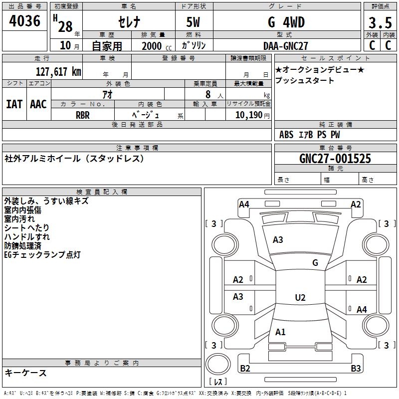 NISSAN SERENA G 4WD - лот 4036