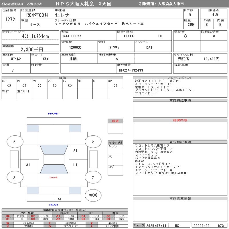 NISSAN SERENA E-POWER HIGHWAY STAR V/ WATERPROOF SEAT CAR - лот 1272