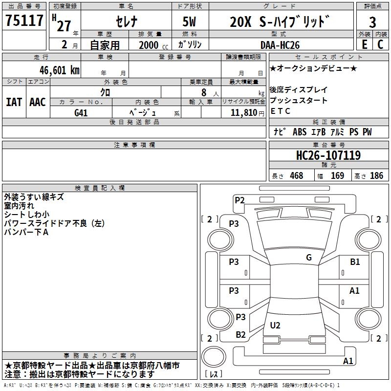 NISSAN SERENA 20X S- HYBRID - лот 75117