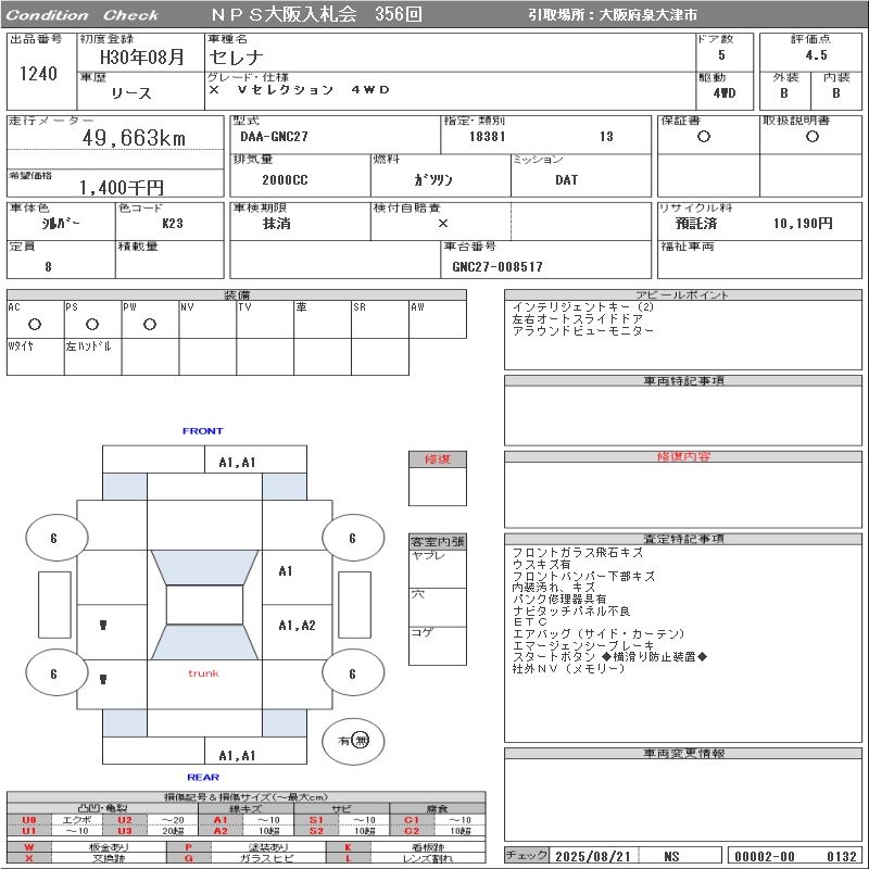 NISSAN SERENA X/V SELECTION 4WD - лот 1240