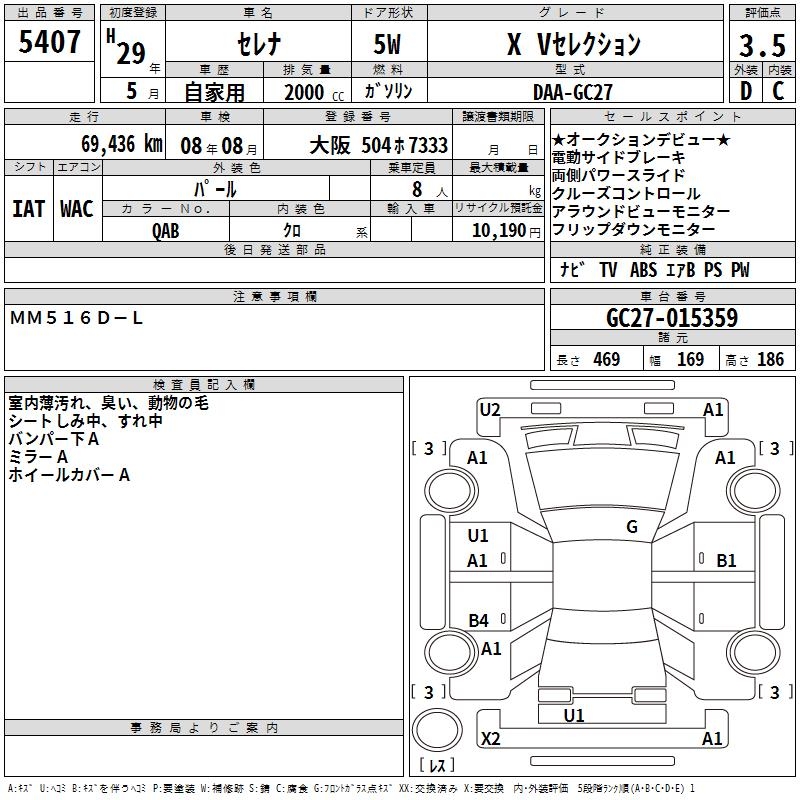 NISSAN SERENA X V SELECTION - лот 5407