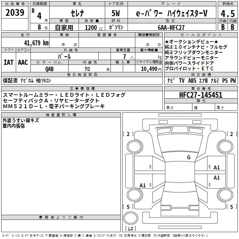 NISSAN SERENA E- POWER HIGHWAY STAR V - лот 2039